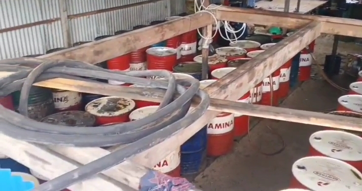 Dari pantauan Tim media bersama LSM di lokasi menemukan puluhan Drum tersusun rapi yang ditempatkan dibelakang sebuah bangunan diduga berisi BBM Subsidi milik inisial BG cs.