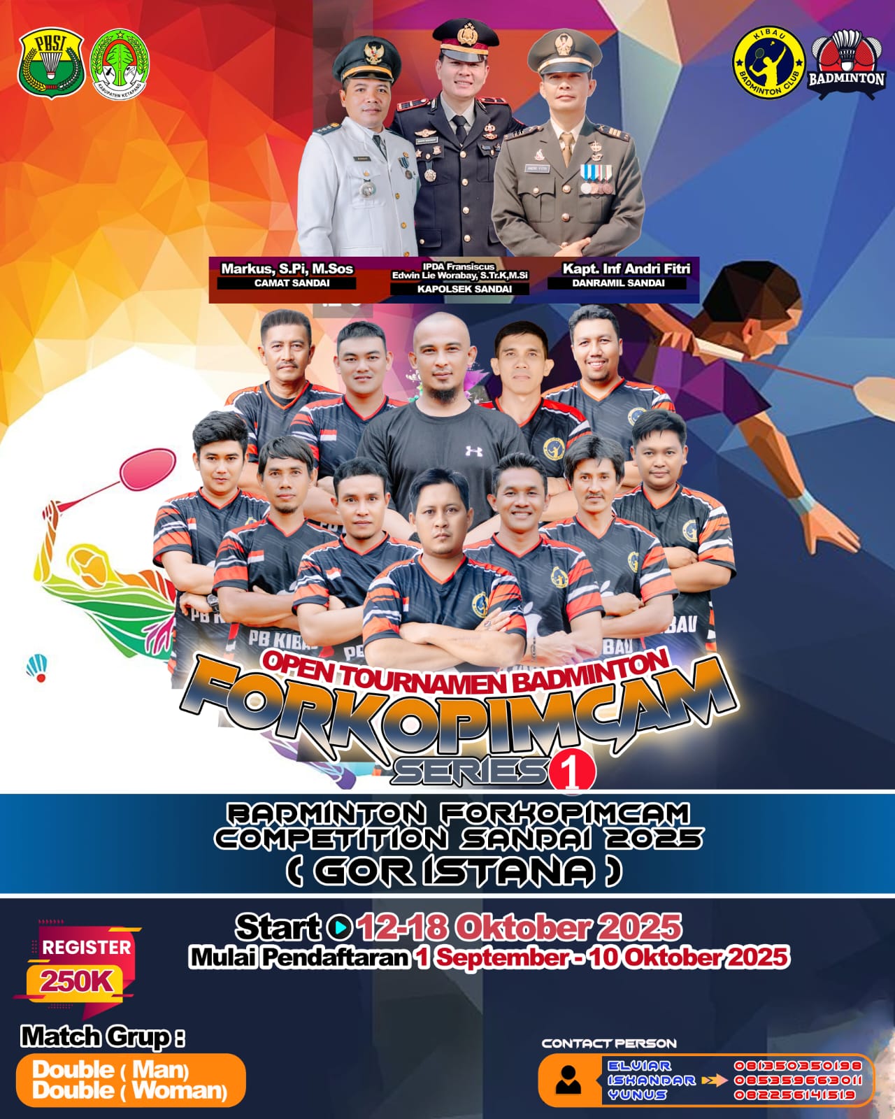 Camat Sandai, Markus, menyatakan bahwa Open Turnamen Badminton Series 1 ini rencananya akan diadakan setiap tahun. Forkopimcam, yang merupakan singkatan dari Forum Koordinasi Pimpinan Kecamatan (beranggotakan Camat, Kapolsek, dan Danramil), memiliki peran sentral dalam mengkoordinasikan urusan pemerintahan umum di tingkat kecamatan, termasuk keamanan, ketertiban, dan pembangunan wilayah. Inisiatif turnamen ini diharapkan menjadi wadah positif untuk pembinaan atlet dan mempererat silaturahmi antar-kecamatan.