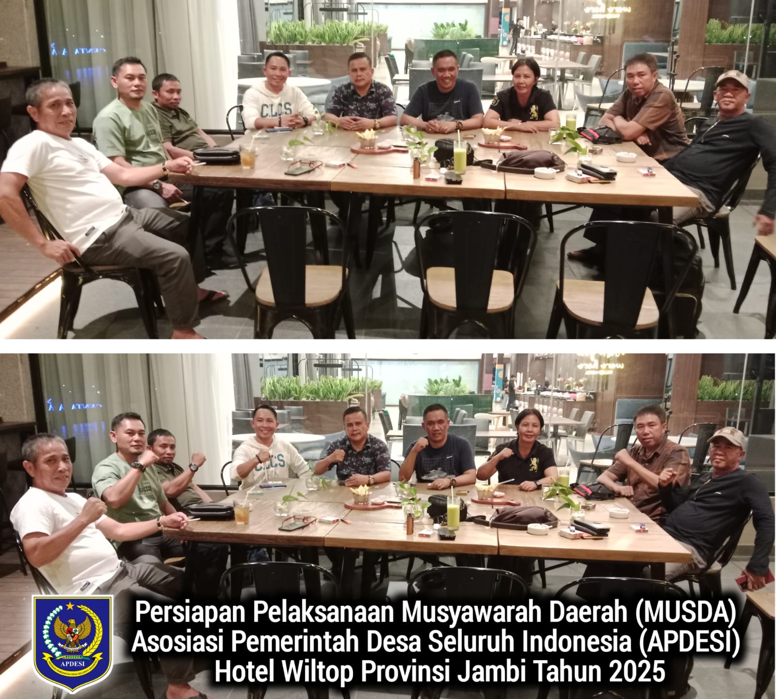 JAMBI – Bertempat di Hotel Wiltop Jl. Sultan Thaha no. 17 Jambi, Panitia Pengarah dan Panitia Pelaksana Musda APDESI Provinsi Jambi, hari ini Selasa, (22/04/2025) Matangkan Persiapan Muyawarah Daerah yang akan menentukan Langkah DPD APDESI Provinsi Jambi masa Bhakti 2025 – 2030.